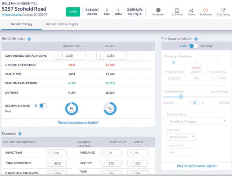 Mashvisor’s Rental Property Calculator: Airbnb Occupancy Rate for an Atlanta Investment Property