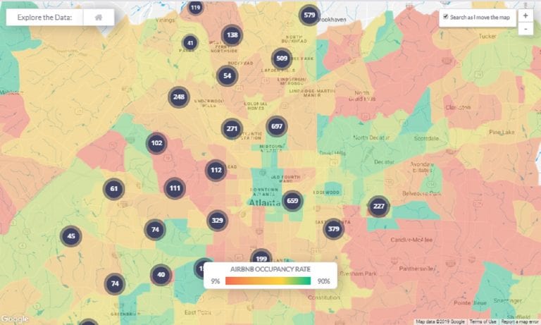 You can use Mashvisor’s heatmap analysis tool to quickly and efficiently find the neighborhoods with the highest and the lowest Airbnb average occupancy rate in any US city or town. You can have a look here at the Atlanta housing market: