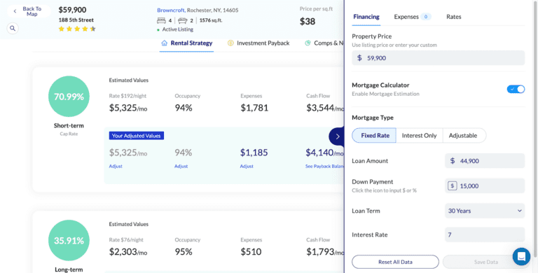 Even if you are planning to buy vacation homes for sale, it would still be nice to see how the property will perform as a long term rental versus as a short term rental. A platform with a tool that allows you to compare the two rental strategies can help you see a general overview of your possible returns using different strategies.