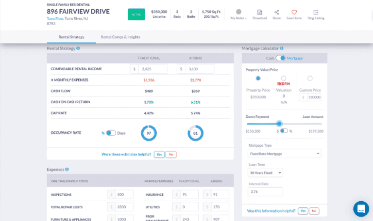 Once you know how you will pay for your Airbnb property, it’s essential that you include the one-time costs and the recurring expenses associated with this in your rental property analysis. If you go for a conventional mortgage, you can use Mashvisor’s mortgage calculator. If not, you can simply enter your custom expenses in our investment property calculator.