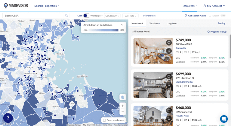 When it comes to short term rental analysis, the above given is just one aspect of Mashvisor’s investment property calculator tool. It allows you to compare and evaluate rental homes for sale by price, estimated rental income, cap rate, rate of return, and even occupancy rate.