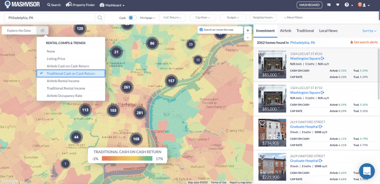 Mashvisor’s Real Estate Heatmap – Philadelphia Neighborhoods with High Traditional Cash on Cash Return