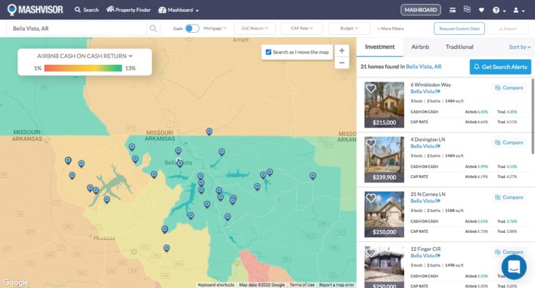 Why invest in Bella Vista, Arkansas? According to Mashvisor’s real estate calculator, properties in the city can generate up to 12% Airbnb cash on cash returns.
