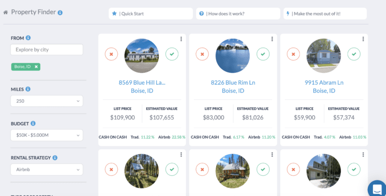 You can also just dive right into your property search directly and look for high return Boise investment properties for sale using another Mashvisor tool – the Rental Property Finder. Check out the top-performing traditional and Airbnb Boise income properties we pulled up using this tool: