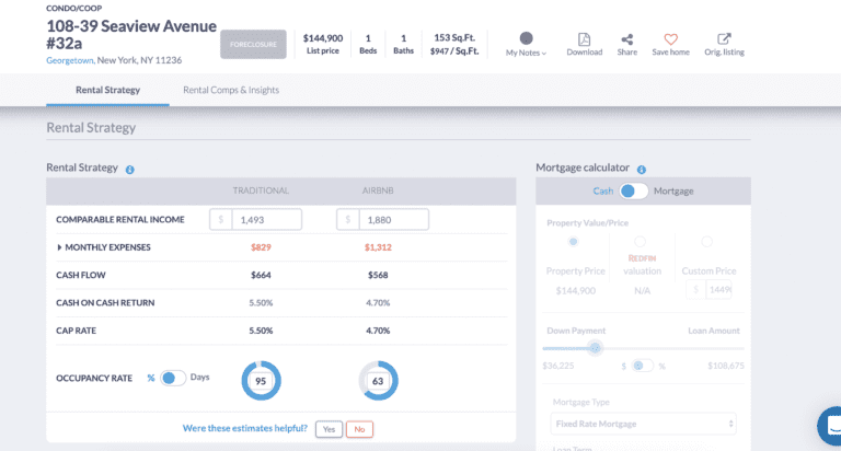 Here is what the investment property analysis for a foreclosure in NYC looks like: