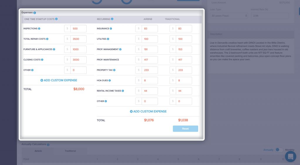 Even more crucial when you plan to invest in Los Angeles real estate, the investment calculator allows you to adjust your expenses including things like insurance costs and mortgage financing. If you had done a little research before and talked to your bank, you can fill in this data, and the investment calculator can show you the unique return on investment you can expect with the Los Angeles investment property of your choice.