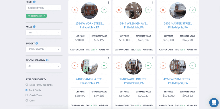 The tool’s AI will return a list of the high cap rate properties for sale in Philadelphia that match your criteria. Take a look: