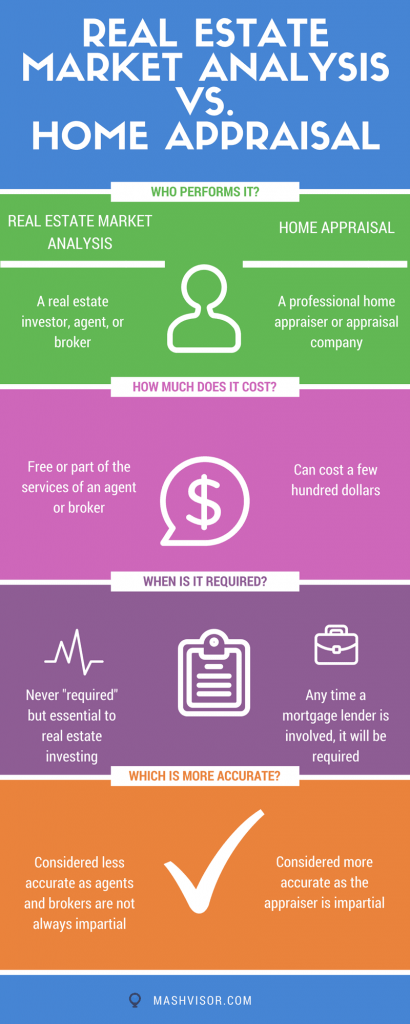 That answer is short and simple, but it only opens up the door to more real estate investing questions. So, what is a real estate market analysis? How do you perform one for a real estate investment? What is a home appraisal and when is it necessary? If they are both considered property valuation methods, what are the major differences?